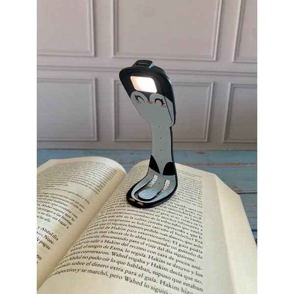 Dos funciones, un solo accesorio encantador. Esta lámpara marcapáginas LED combina iluminación para lectura nocturna con la función de separador de páginas, todo en un diseño adorable disponible en gato y pingüino. Con dos tonos de luz ajustables y hasta 24 horas de autonomía, es perfecta para grandes y pequeños lectores.