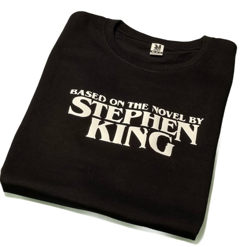 Polera hombre Stephen King de algodón con diseño exclusivo en vinyl textil, para fans del maestro del terror que llevan su amor literario con orgullo. Talla M.