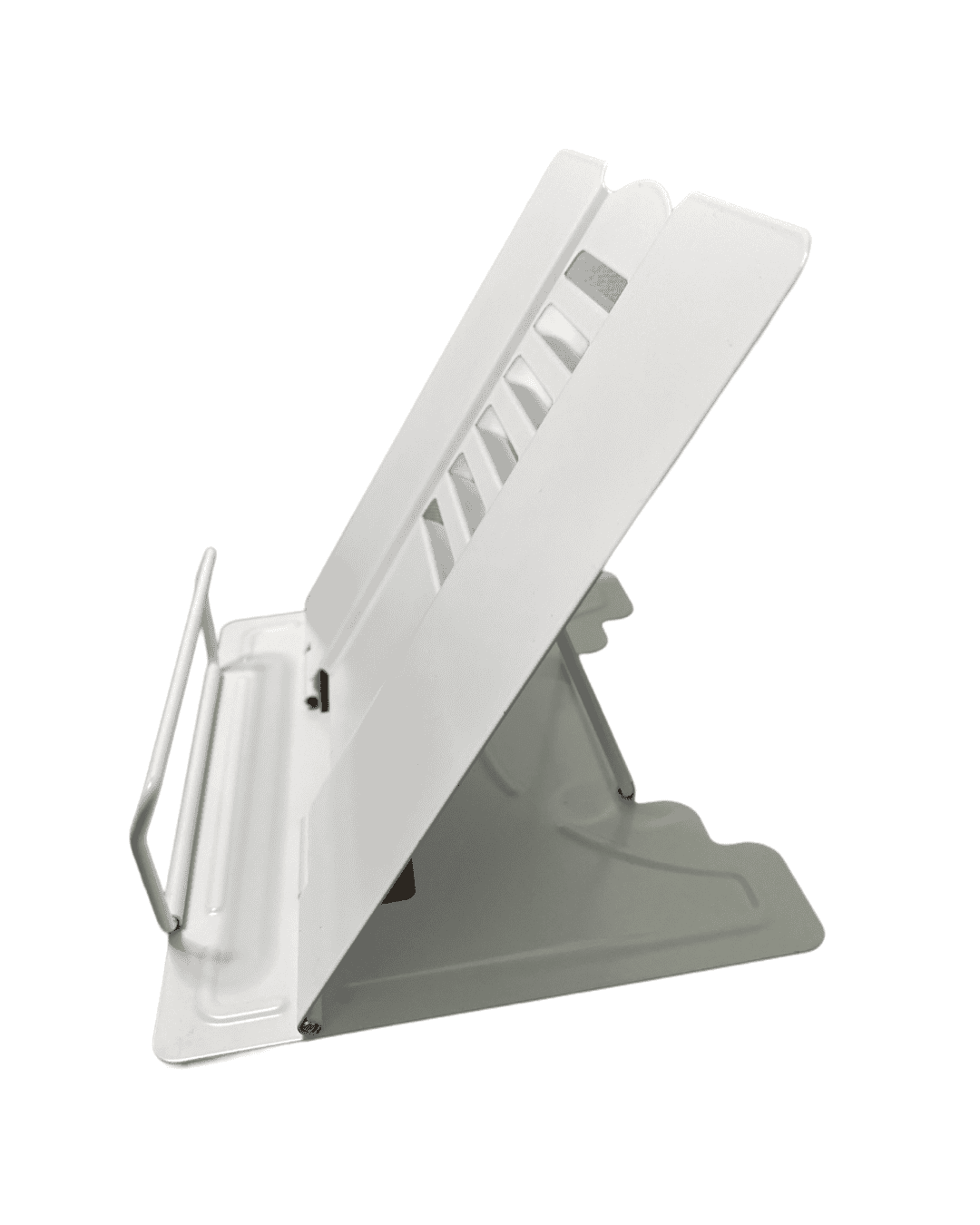 Lee y estudia con la postura correcta. Este atril de metal resistente ajusta el ángulo de tu libro o tableta en 5 posiciones diferentes, acercando el texto a tu nivel visual y reduciendo la tensión en cuello, espalda y ojos. Compacto, plegable y fácil de transportar, te acompaña en casa, la oficina o la biblioteca.